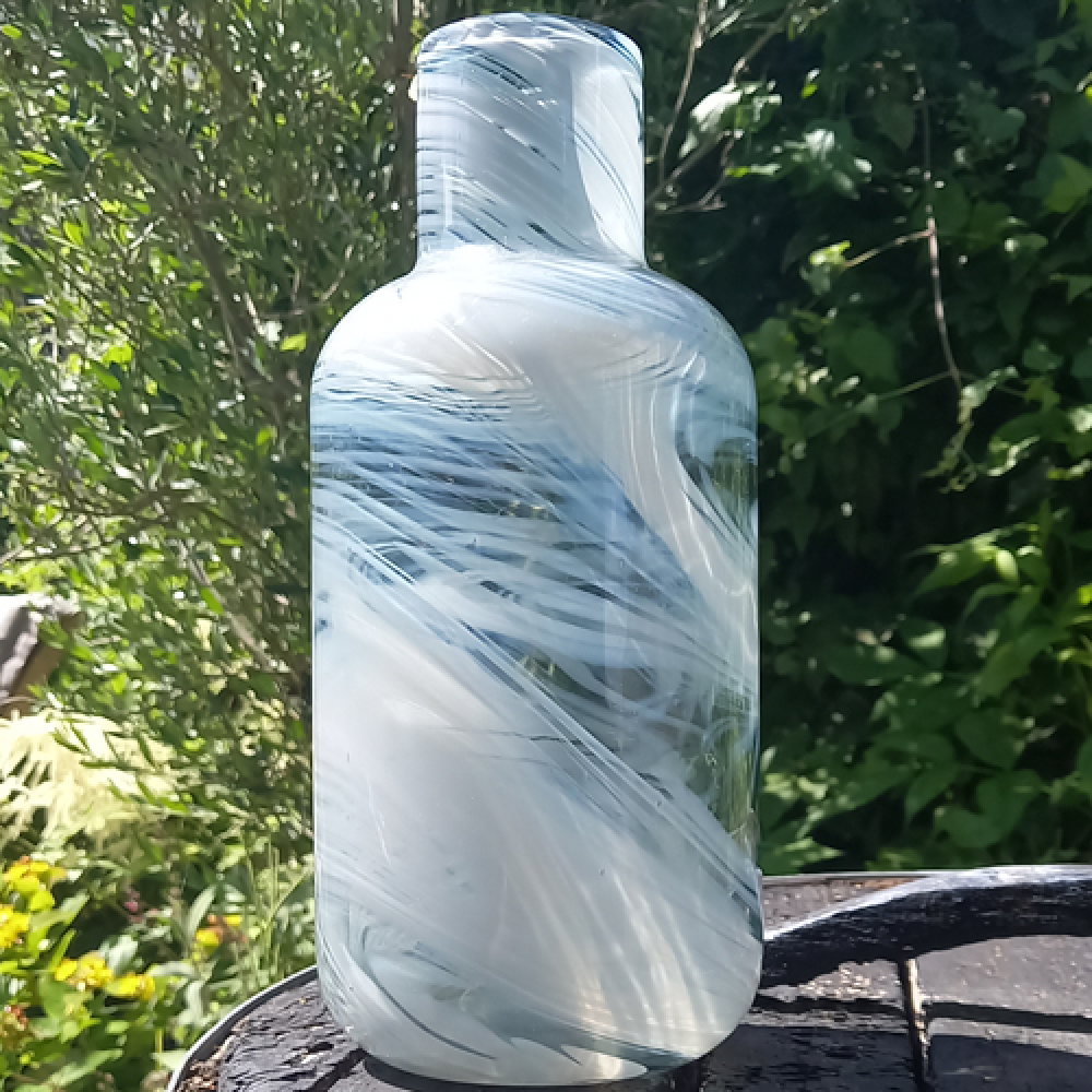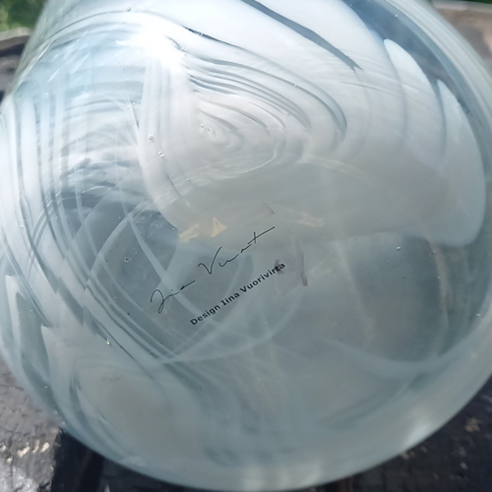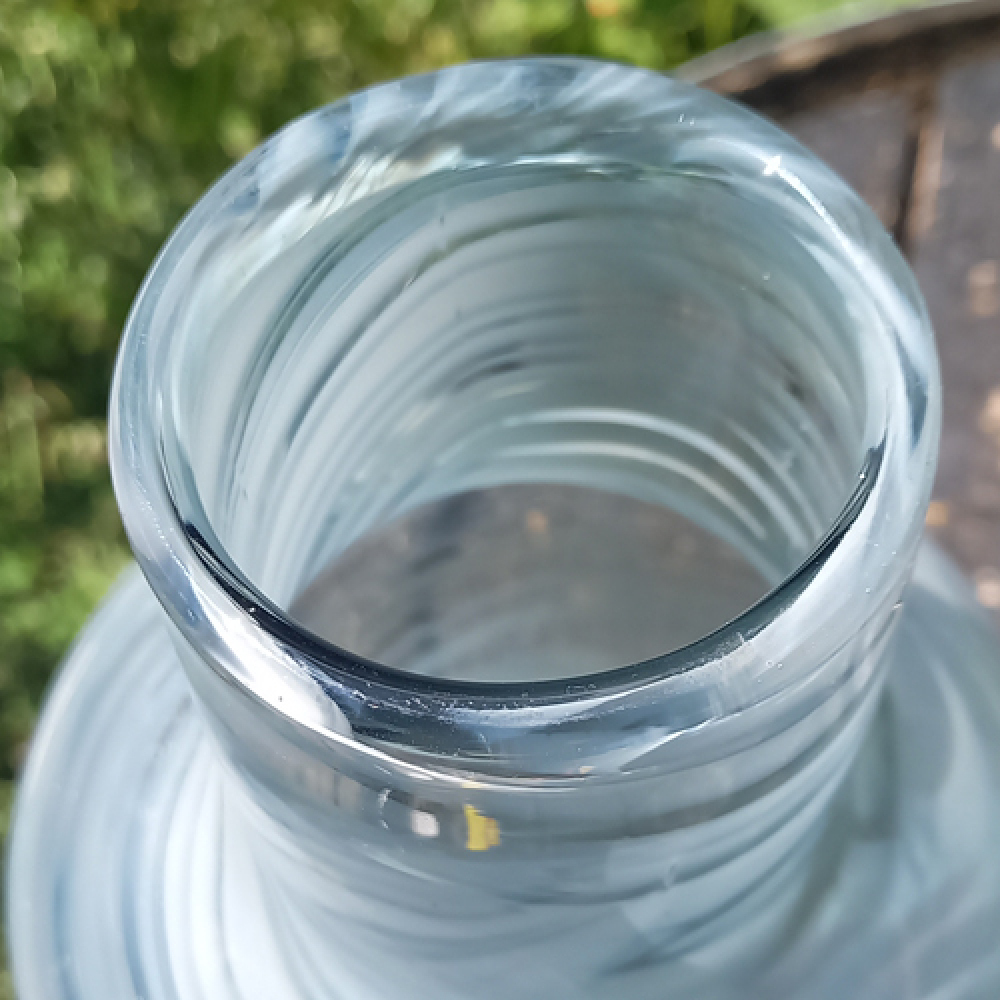 Glazen designvaas met witte tinten in het glas.