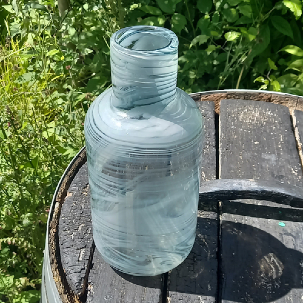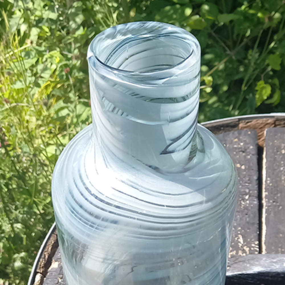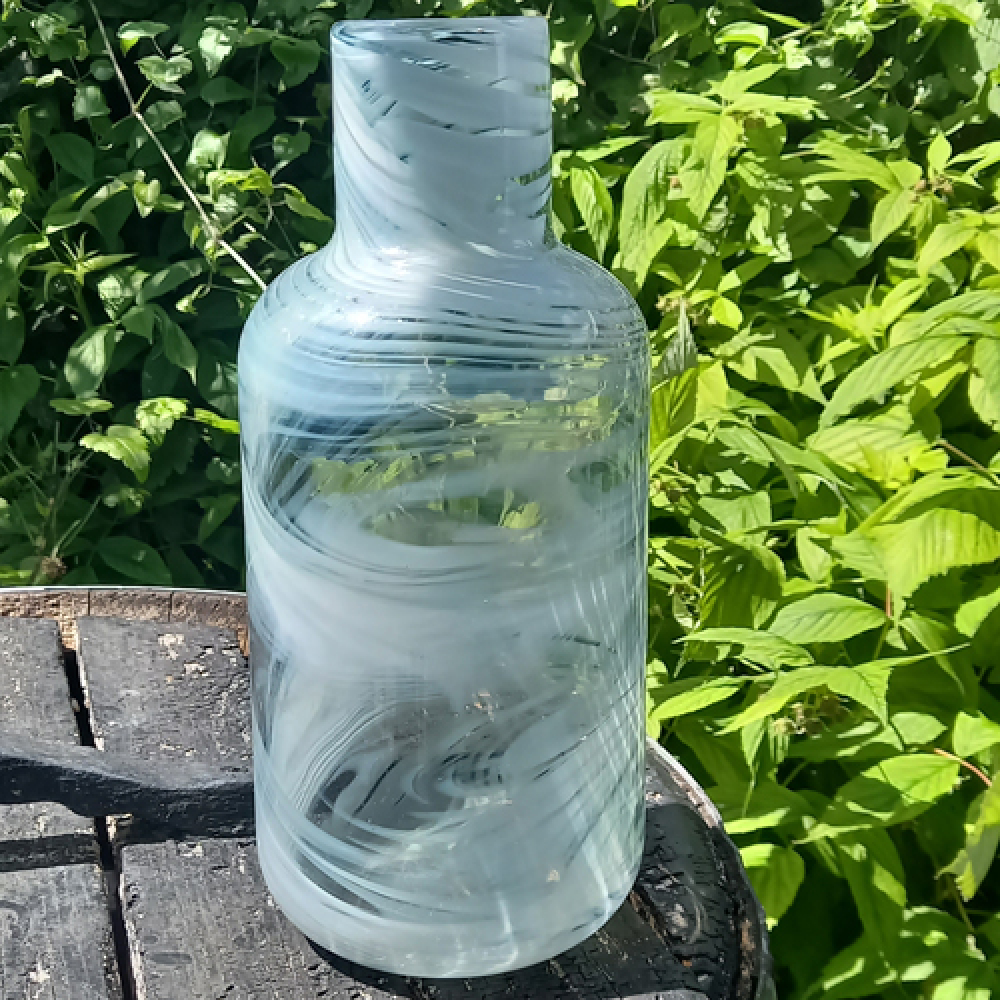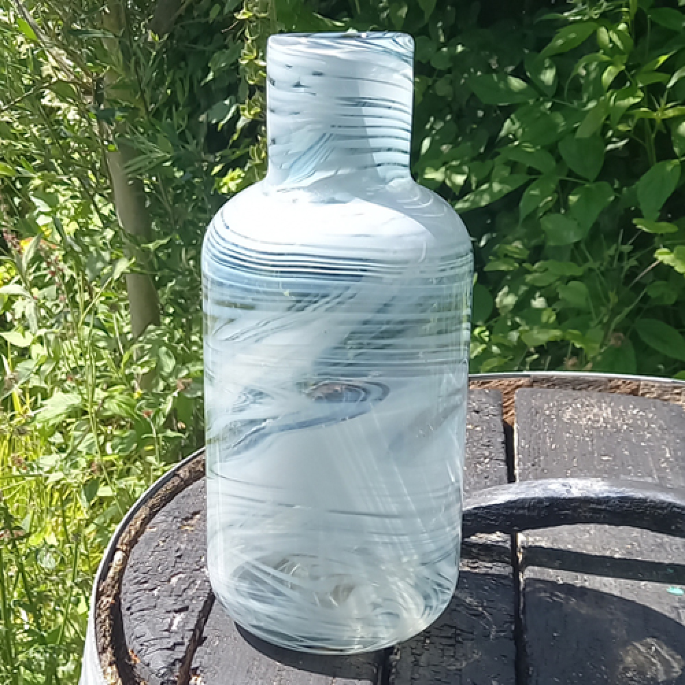 Glazen designvaas met witte tinten in het glas.