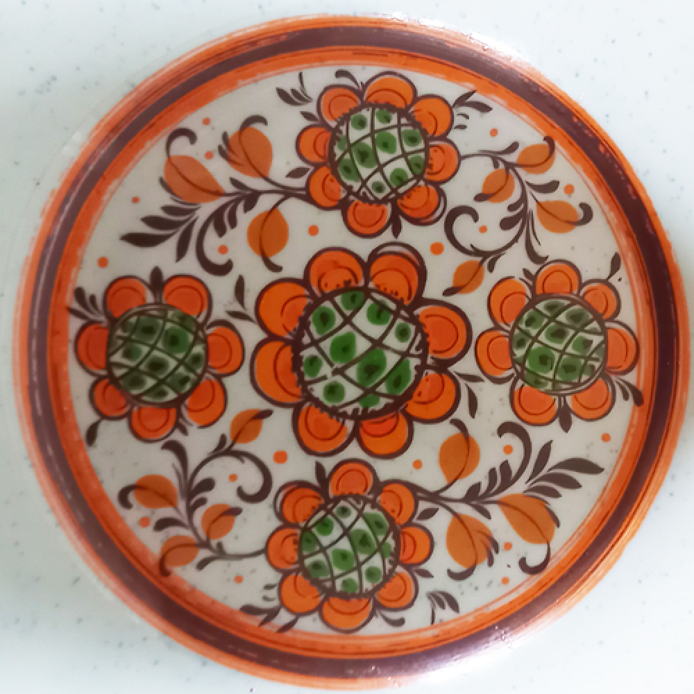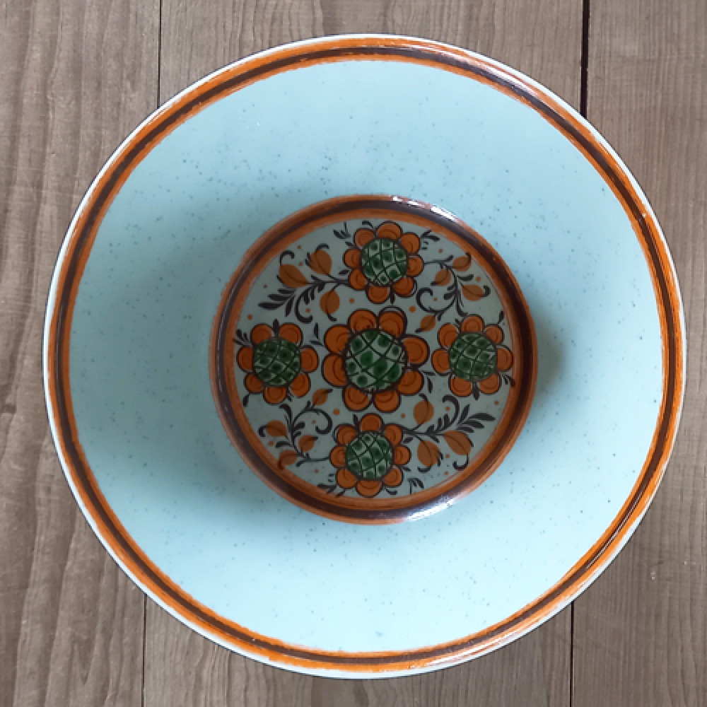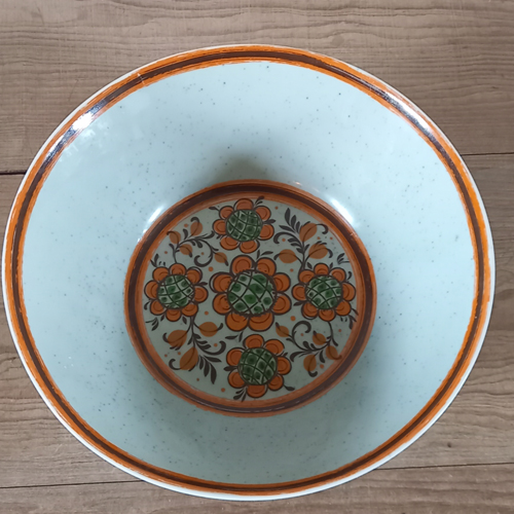 Schaal van Winterling met oranje bies en oranje bloempatroon
