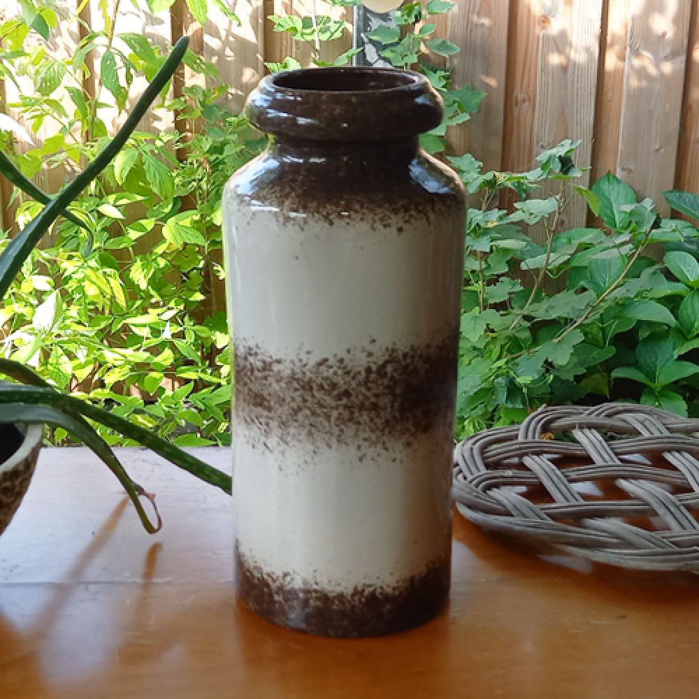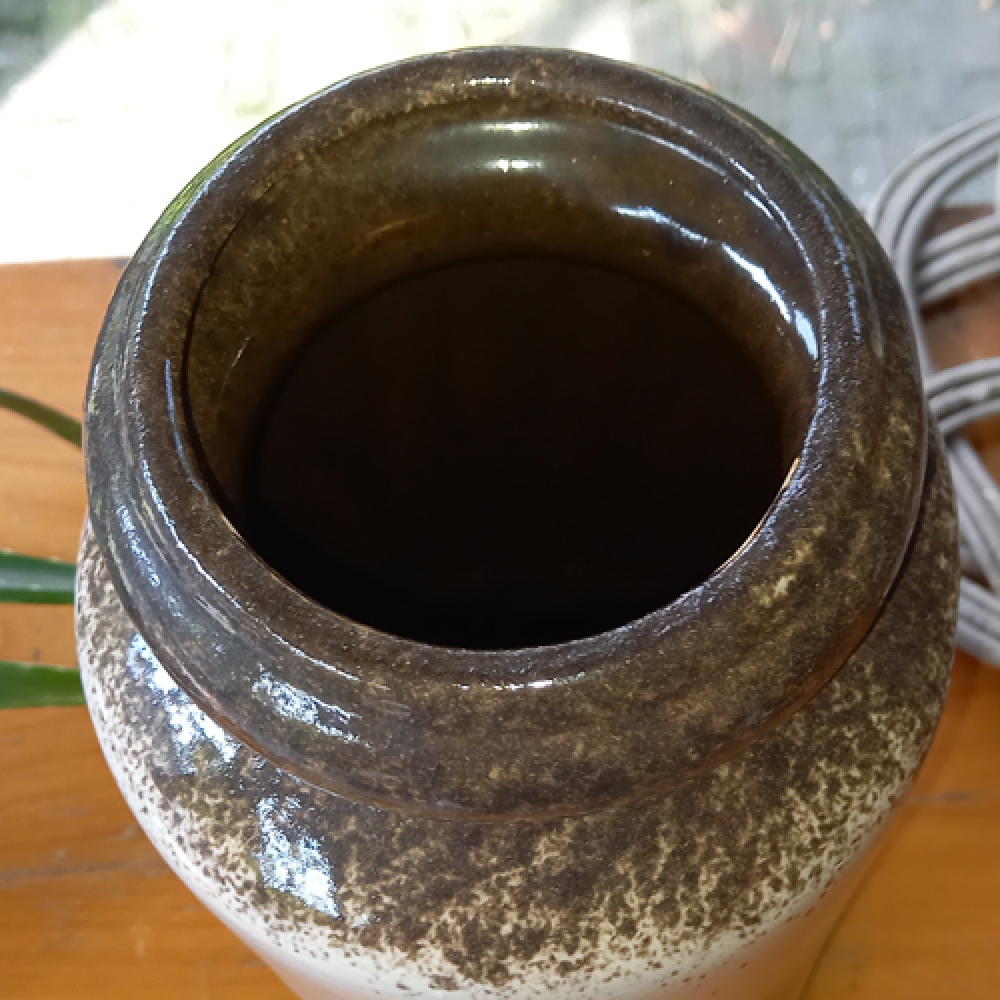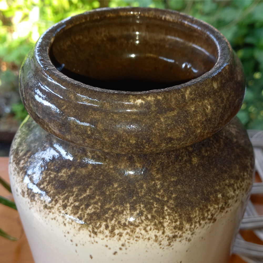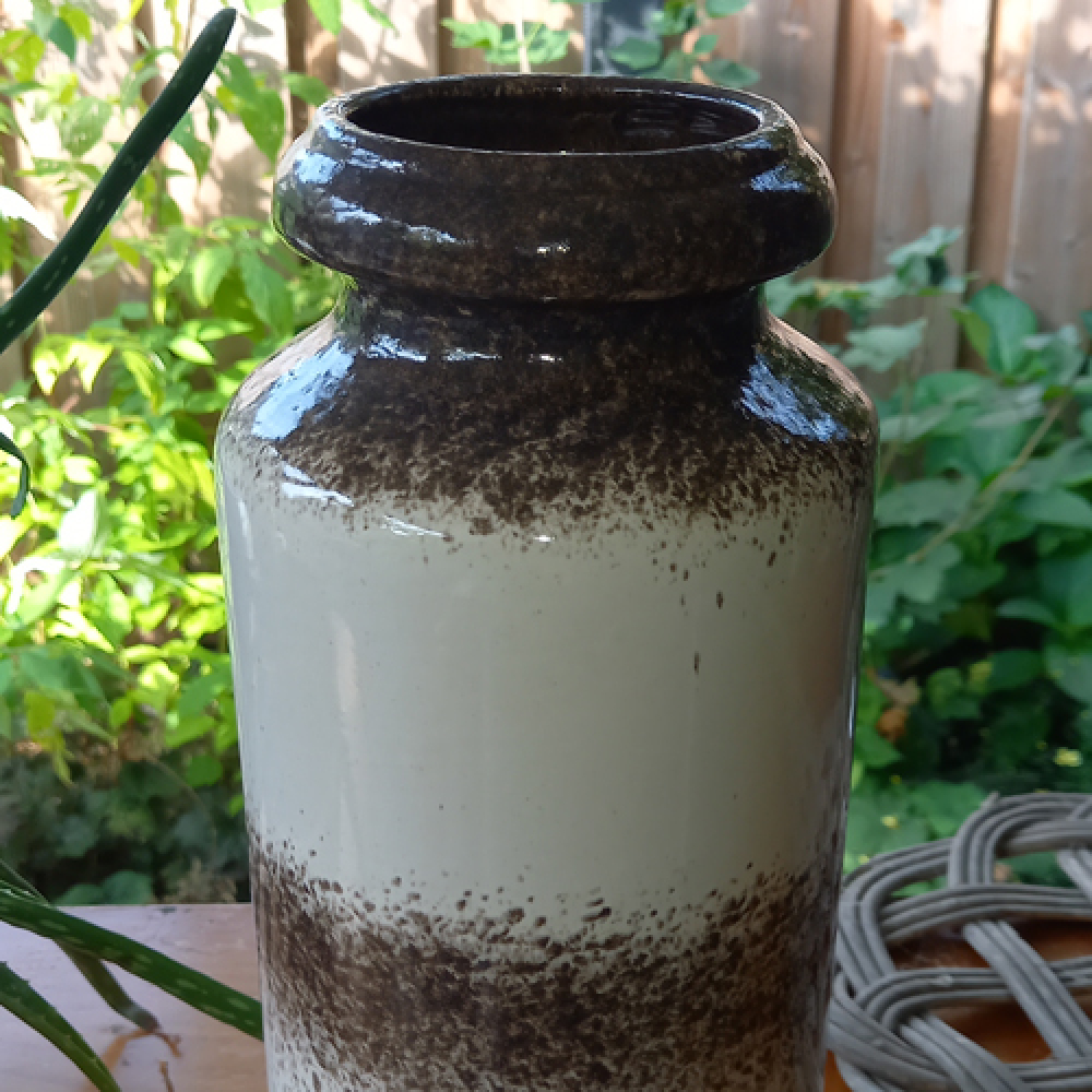 Vintage vaas met gespikkelde structuur.