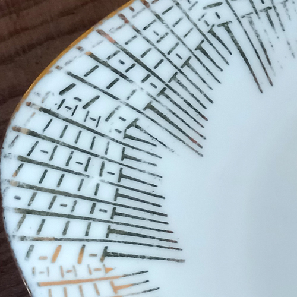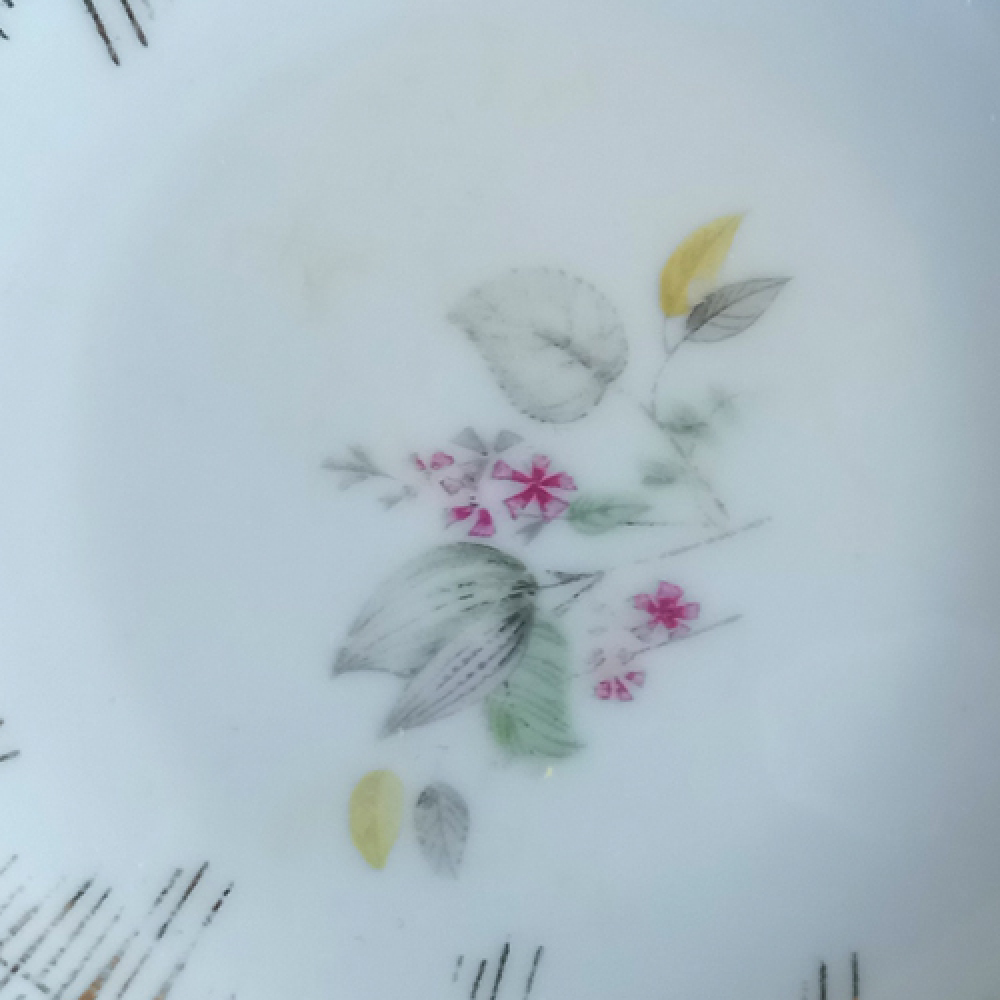 Vintage lekbakjes met bloemmotief en gouden strepen
