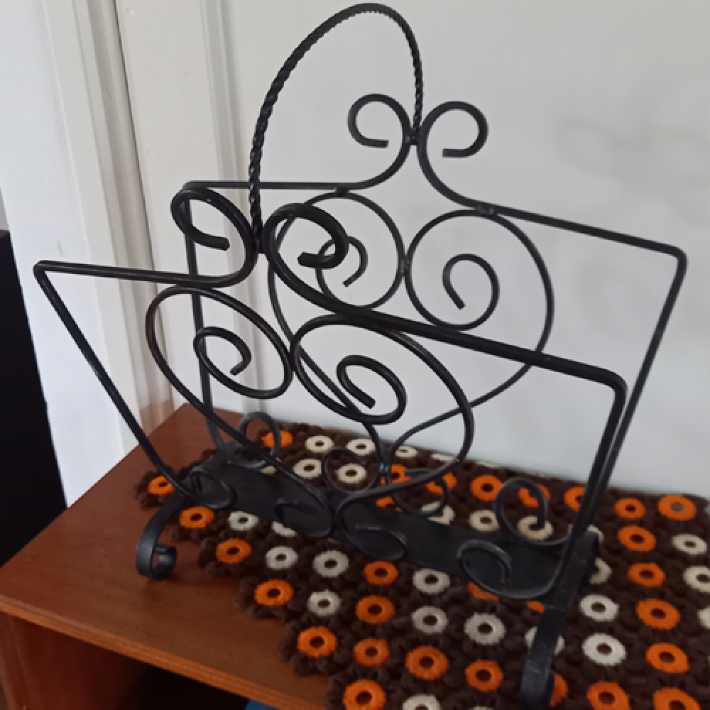 Krantenbak van gedraaid metaal.