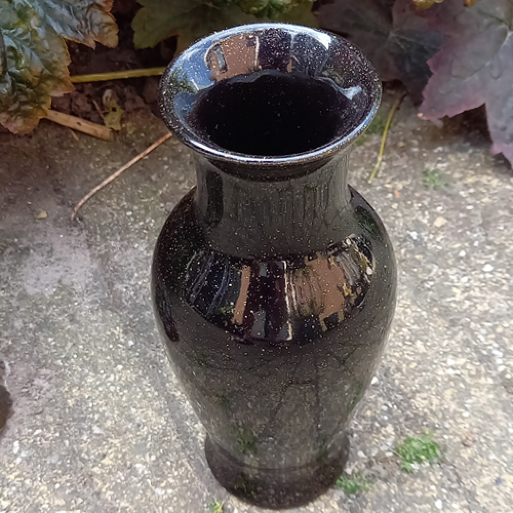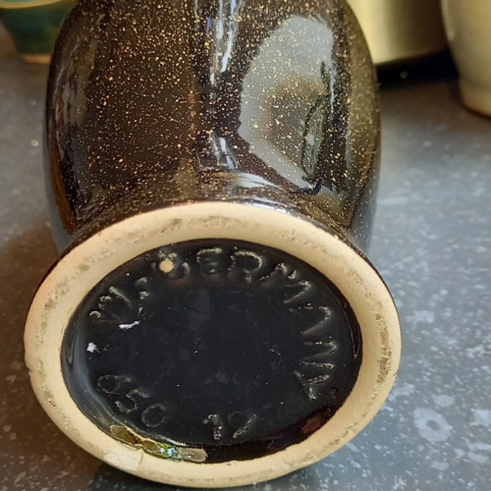 Vintage vaasje W. Germany zwart met gouden stipjes