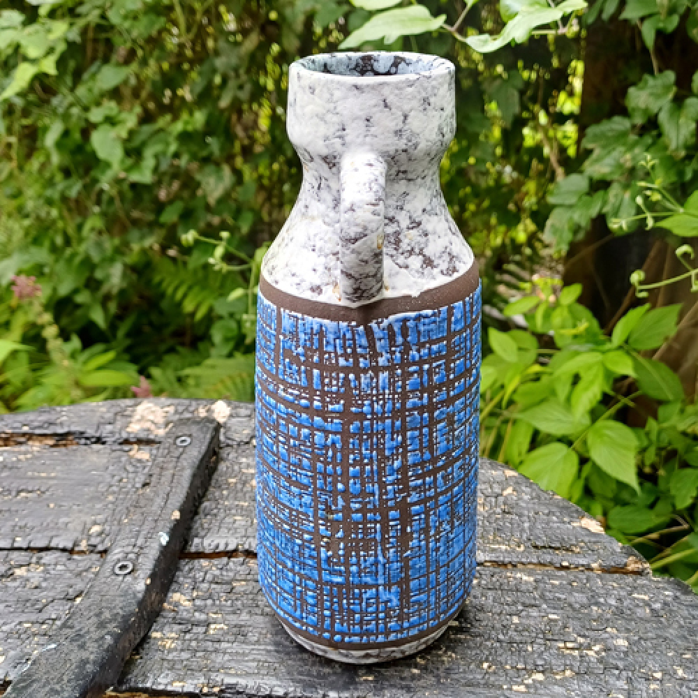 West Germany vaasje met een grove ruitstructuur in het blauw