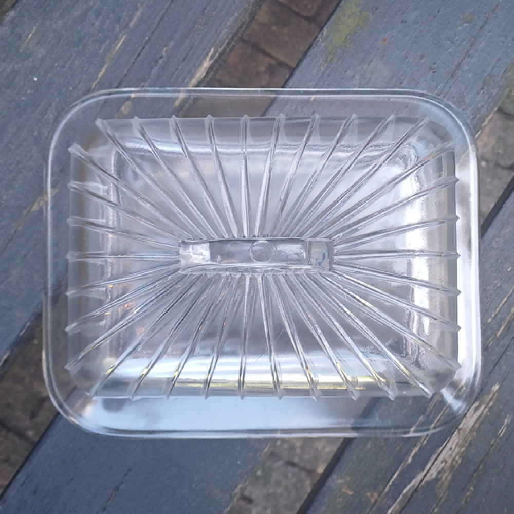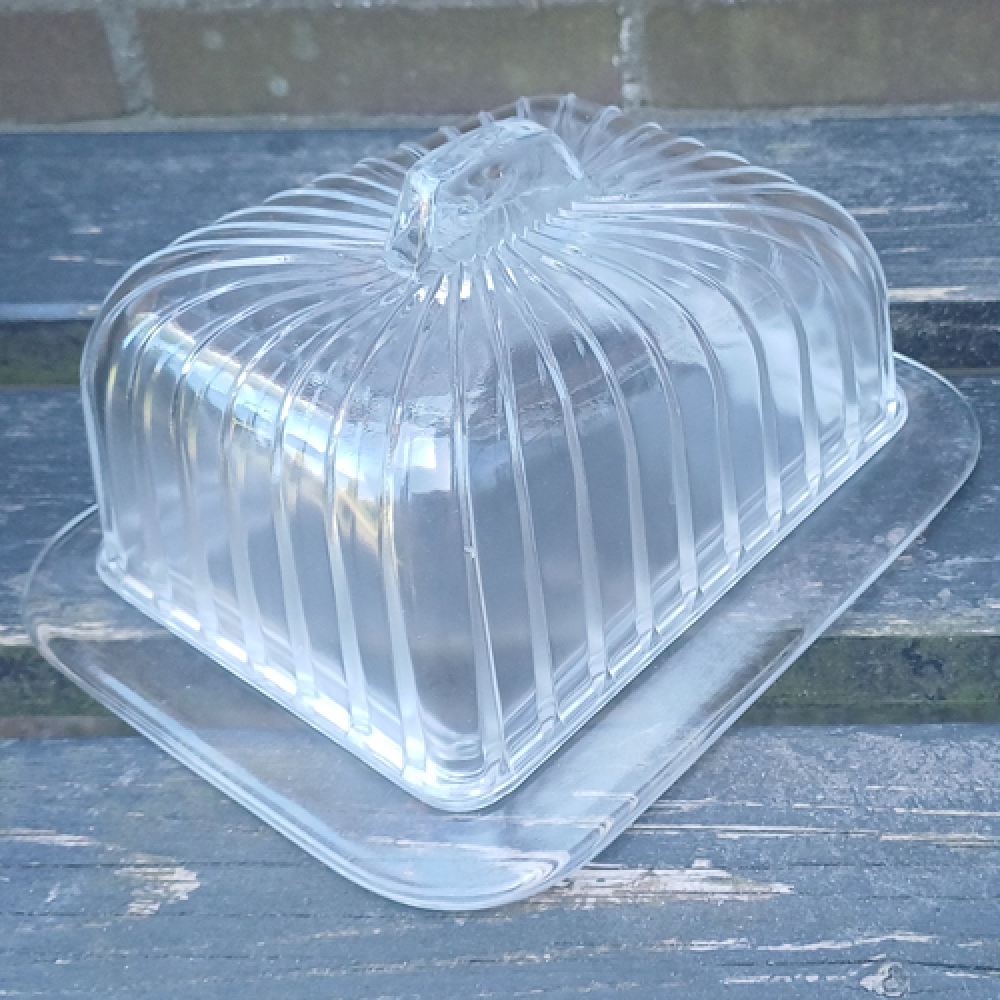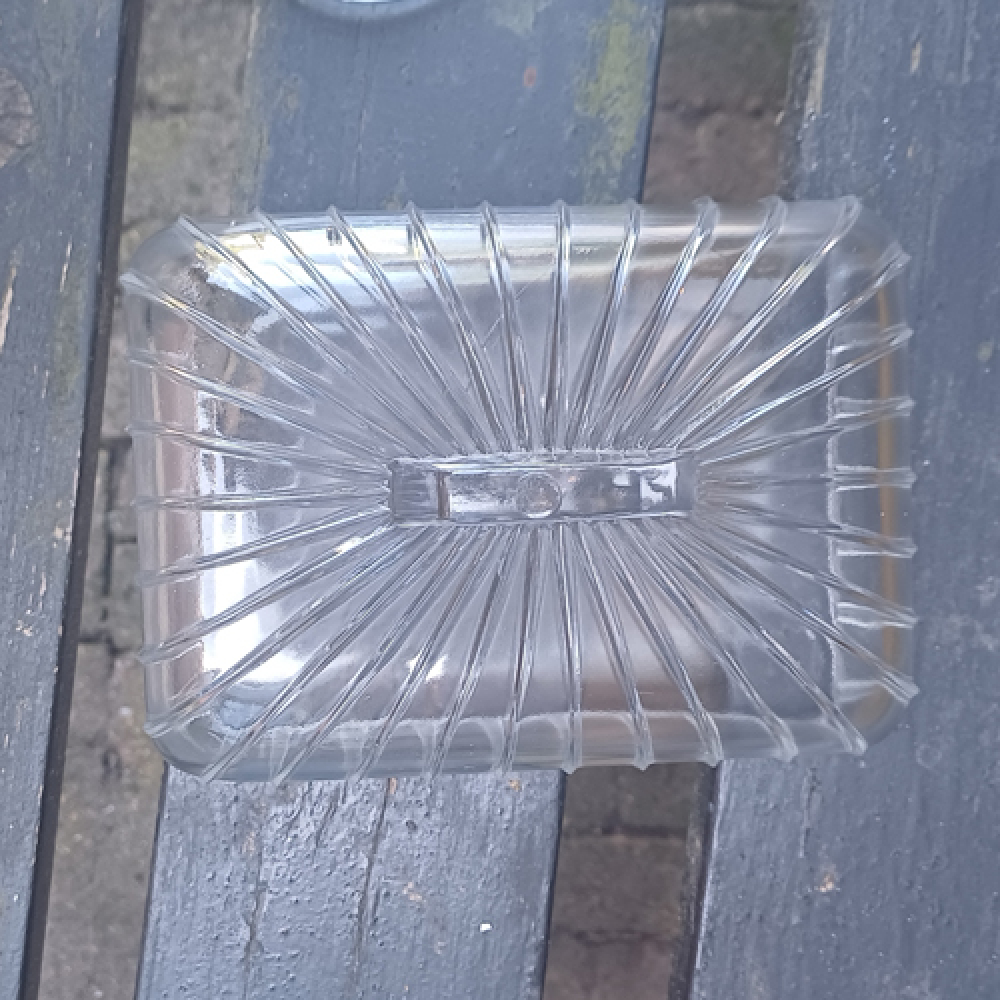 Glazen kaasstolp met streepjes en handvat