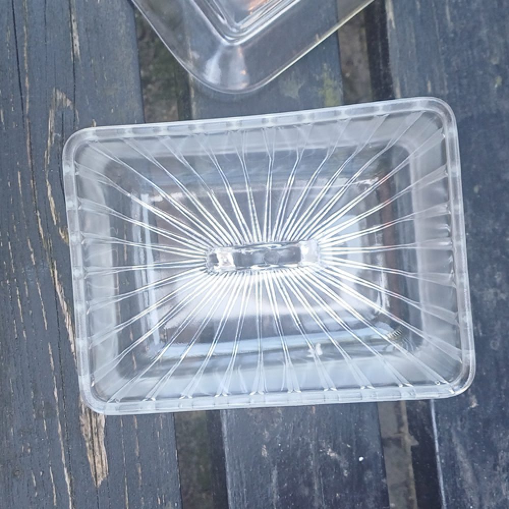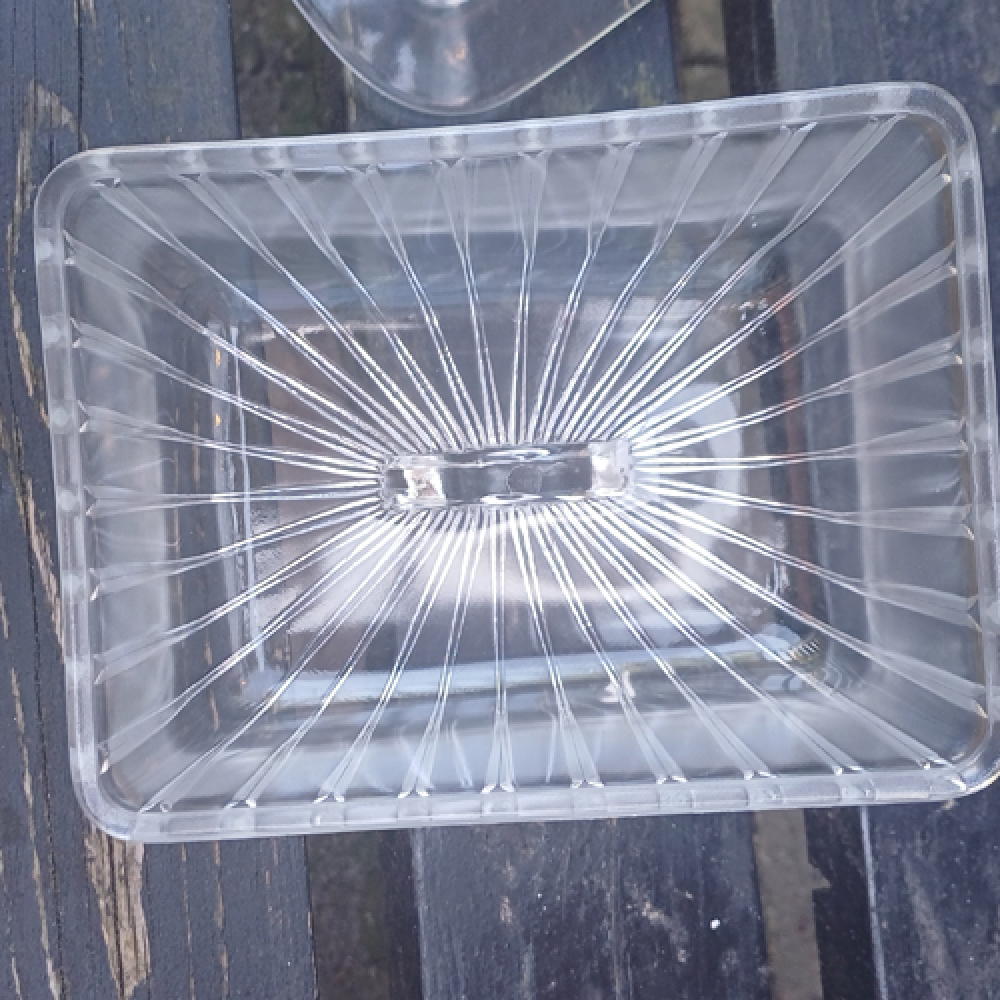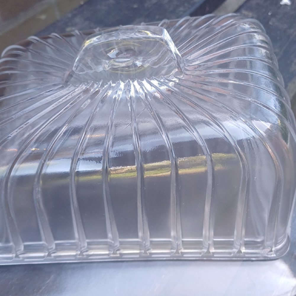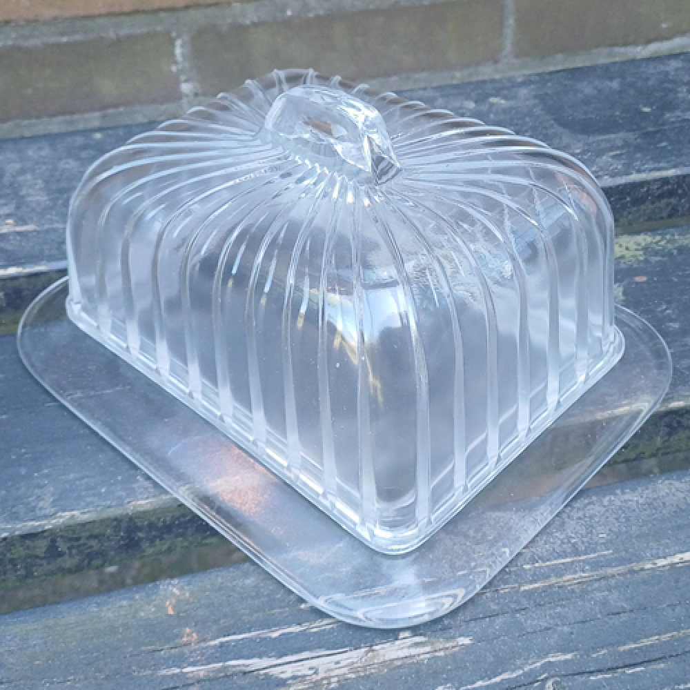 Glazen kaasstolp met streepjes en handvat