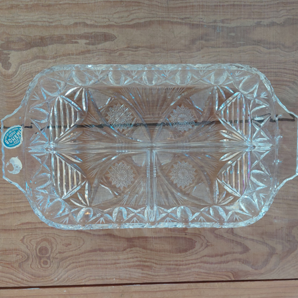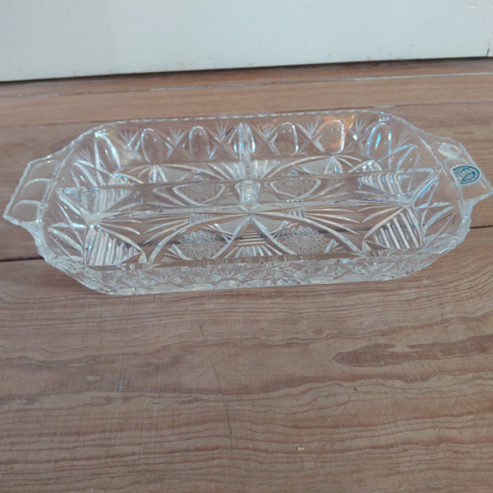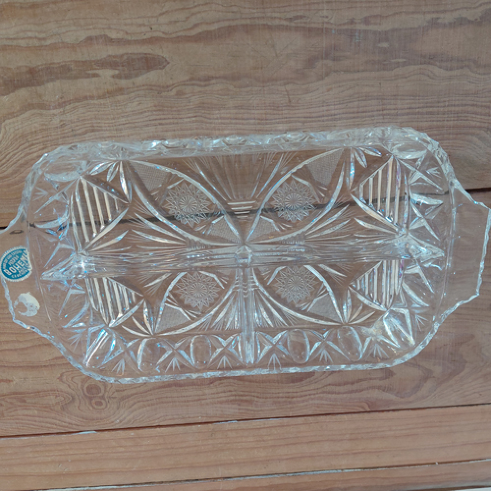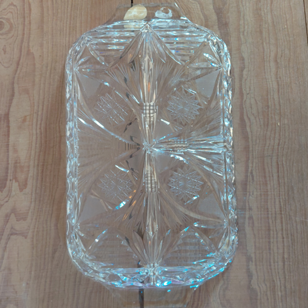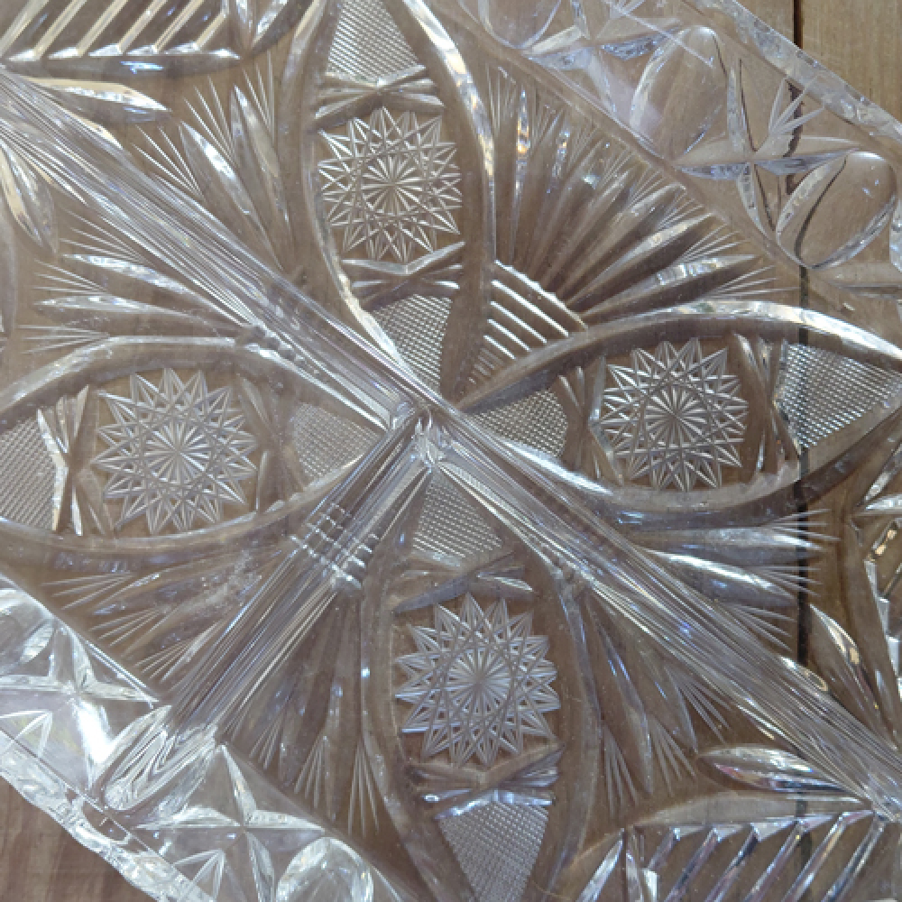 Kristallen schaal met vakjes en bloemmotief