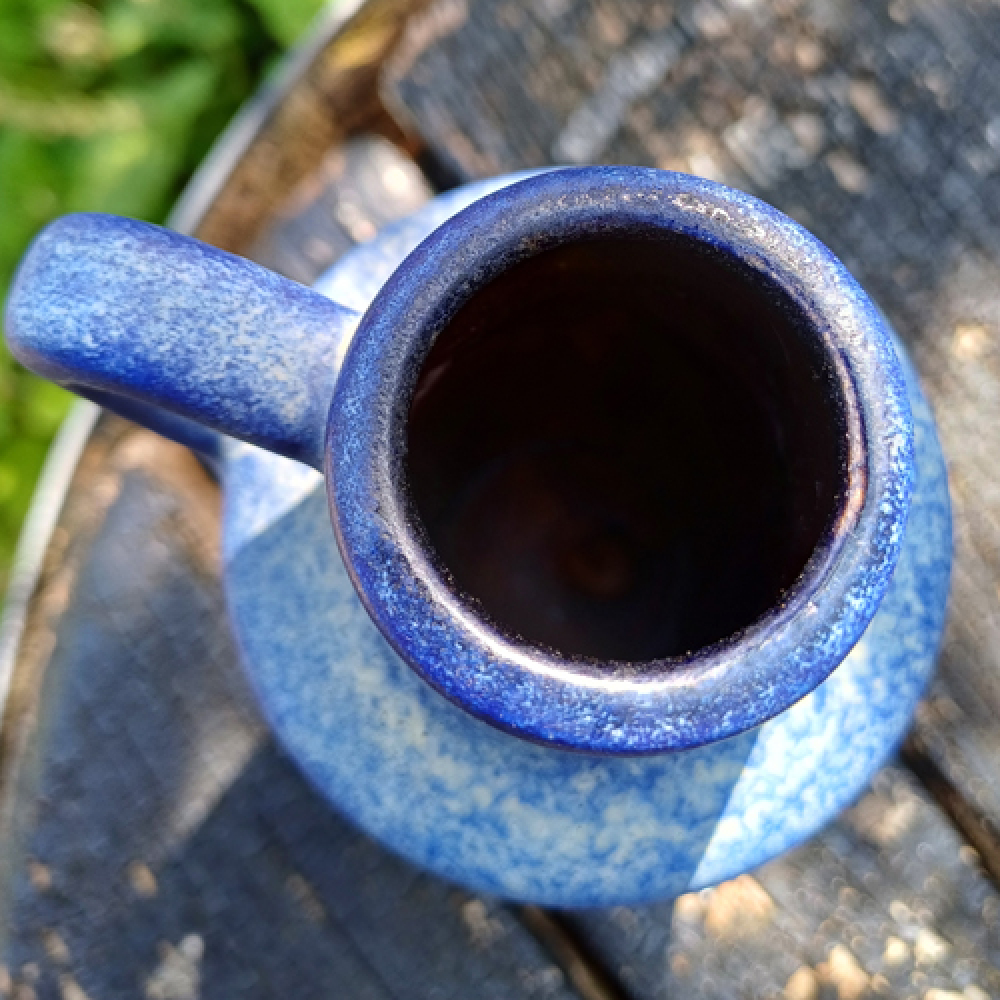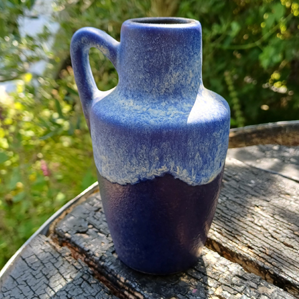 Vaasje Scheurich in blauw getint glazuur met handvat