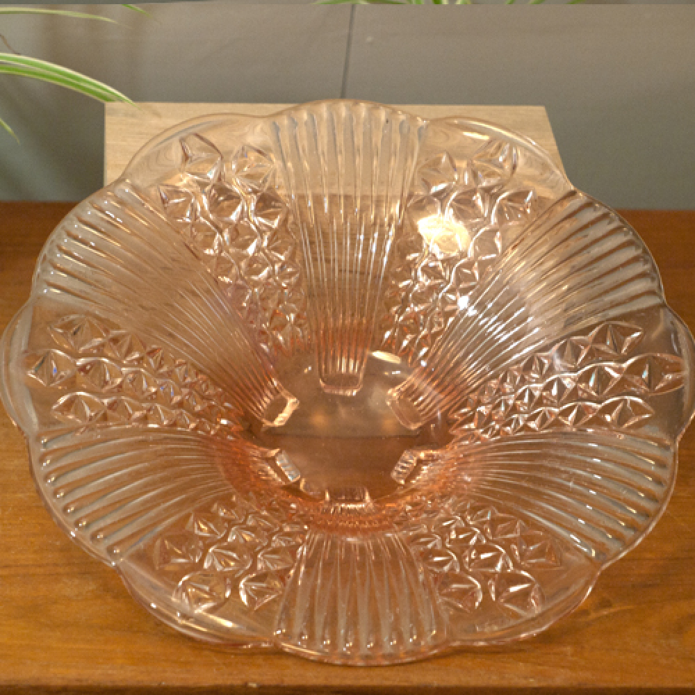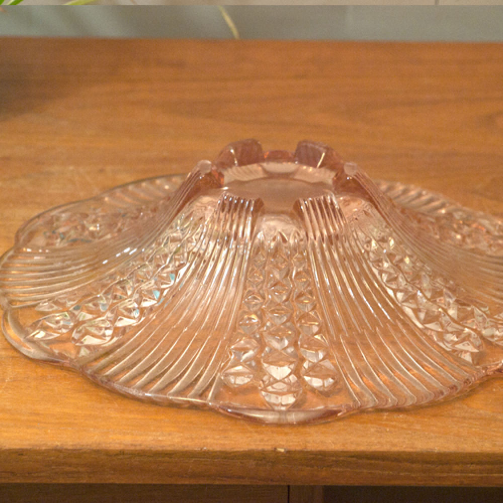 Vintage glazen schaal met lichtrode teint