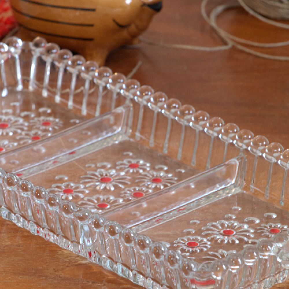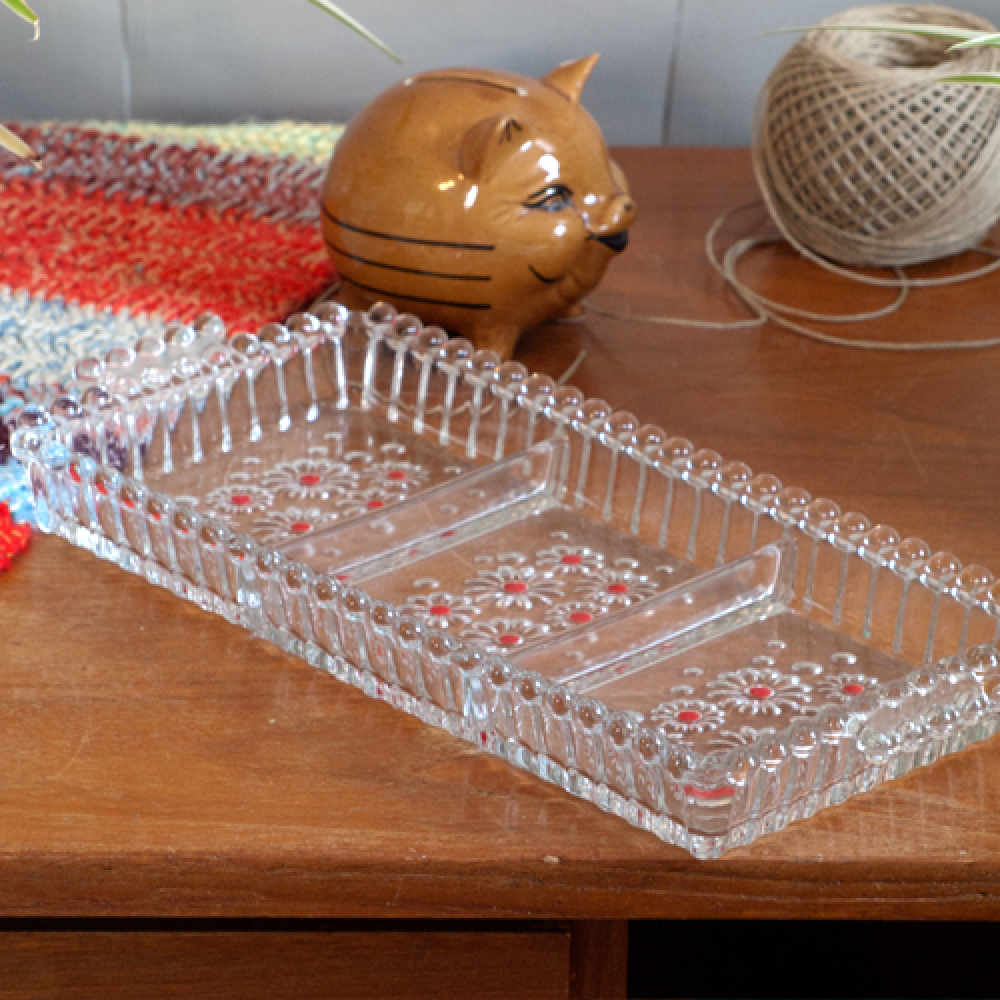 Vintage glazen schaal vierkant