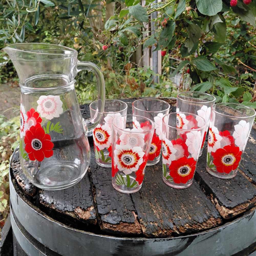 Vintage limonade set VMC Reims met klaproos