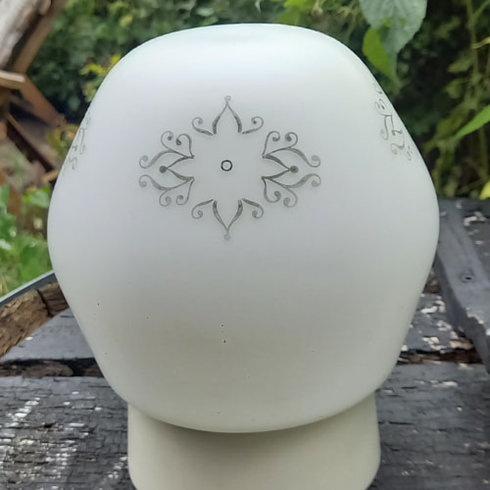 Vintage plafondlampje melkglas met krulmotief