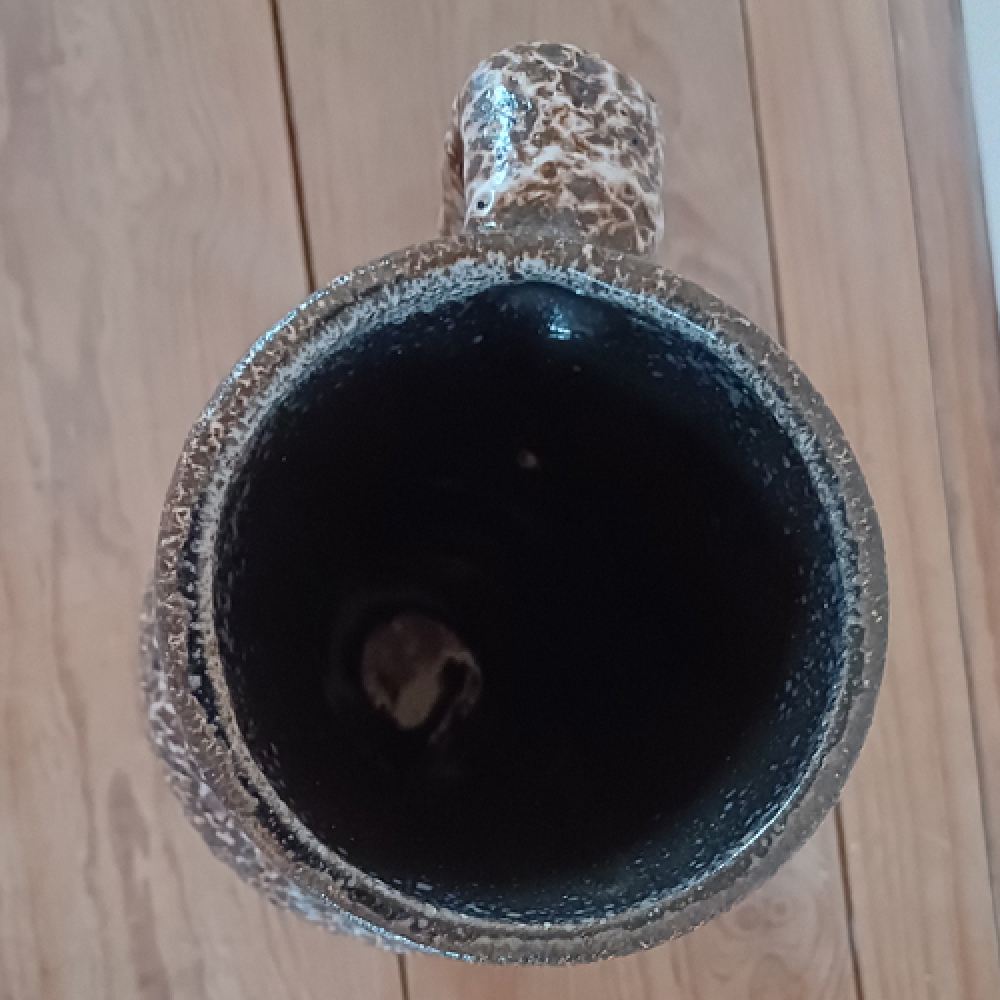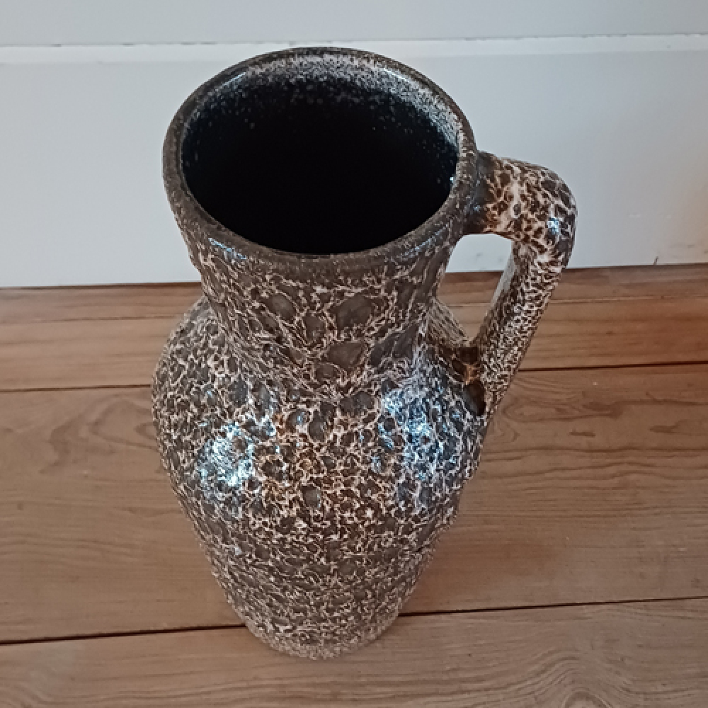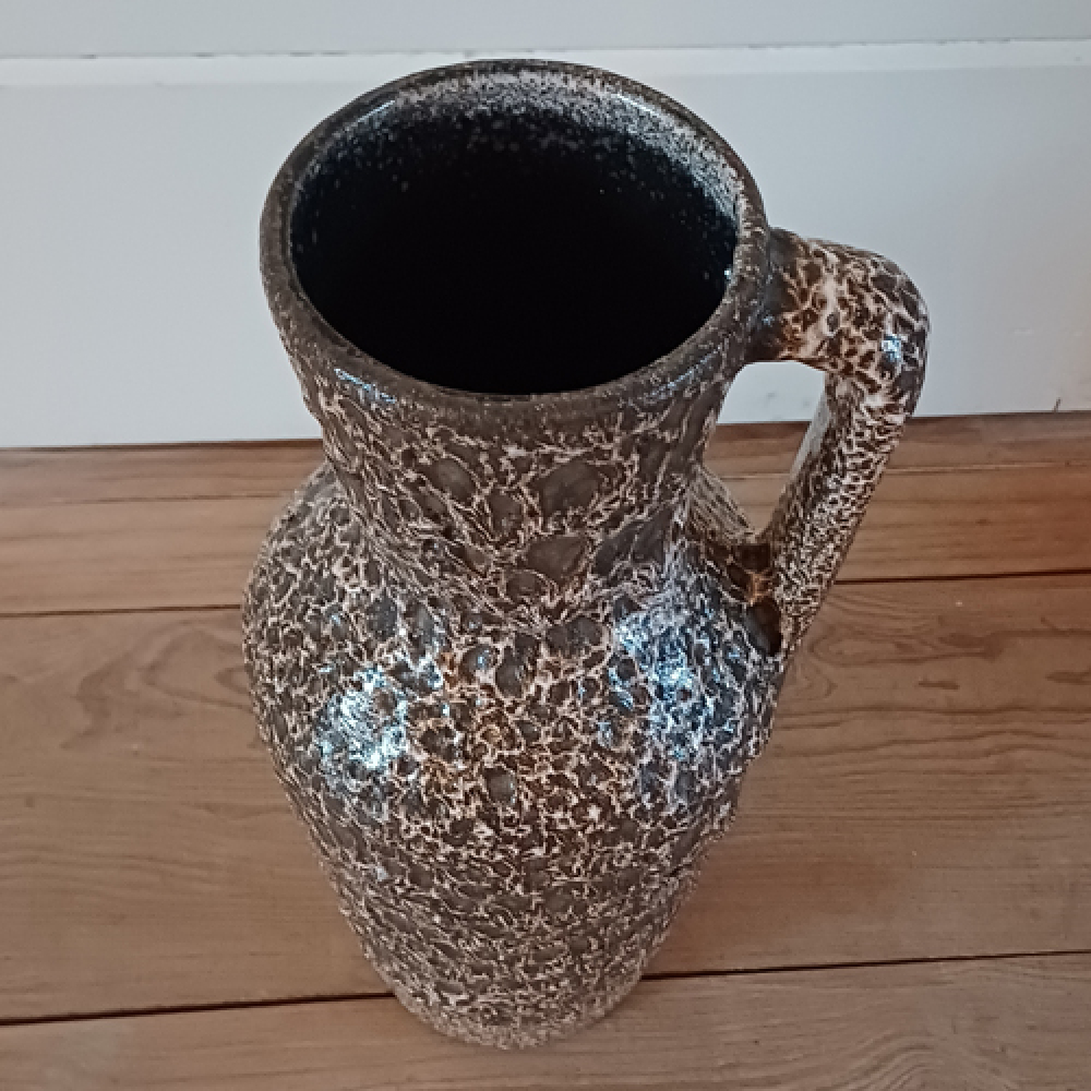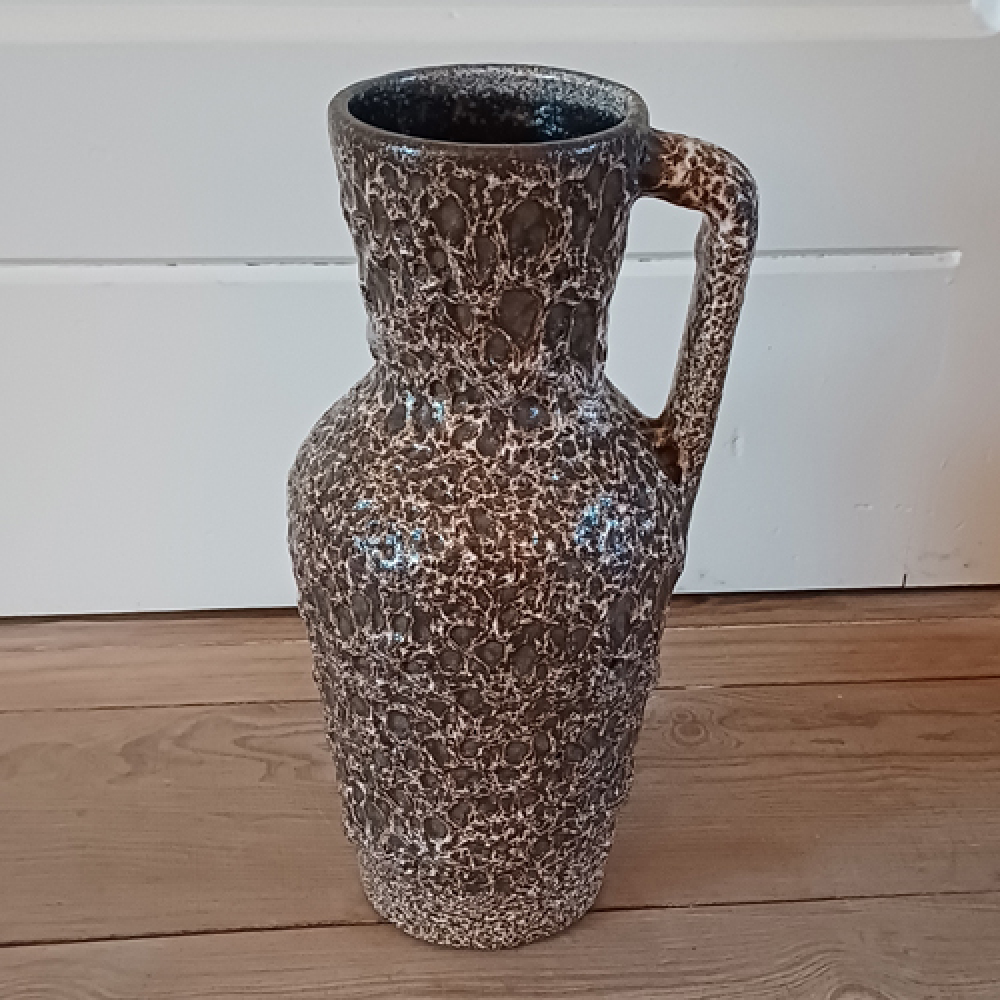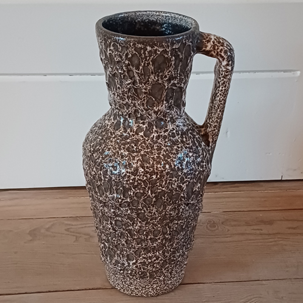 West Germany fatlava vaas bruin wit met handvat